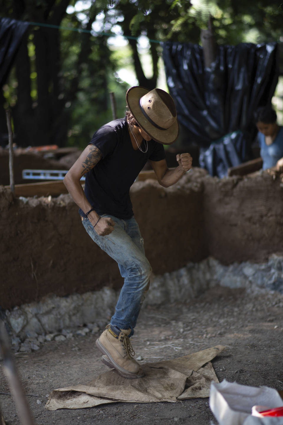 No utilizamos la construcción del bajareque, que es típica de la región. Cambiamos a la técnica de cob (también conocido como “bla”). Cob viene de cobbing, es una técnica inglesa que utilizaba a los bueyes para mezclar el lodo con la fibra y con el agua. Se decía que los animales estaban cobbing.