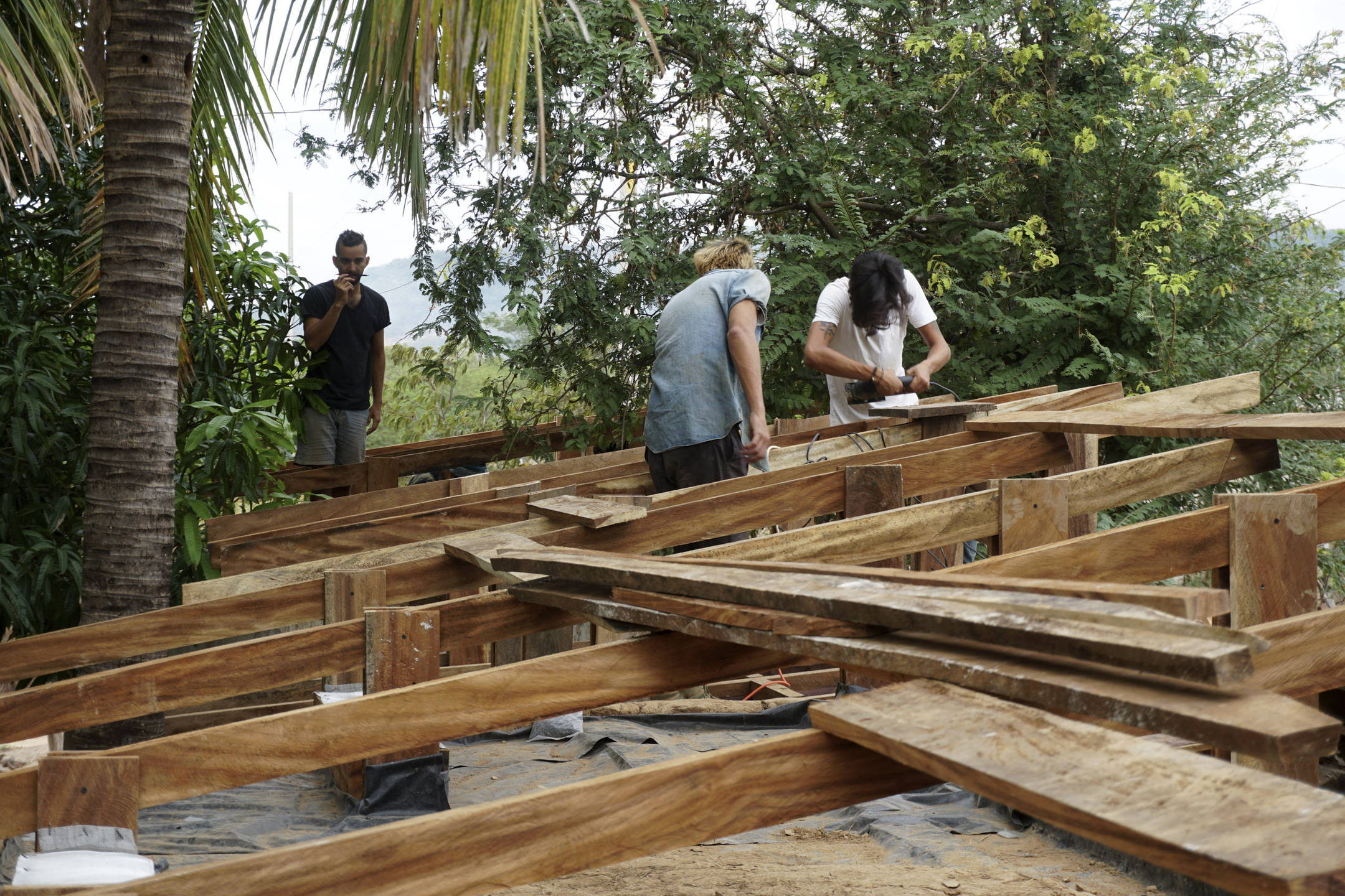El beneficio que tiene es que no se necesita de elementos verticales de madera como postes o columnas, y eso nos ayuda porque en el territorio ya no hay horcones, ya no existen árboles gigantescos de los que sacábamos nuestras piezas de 12 metros de largo. Esa es otra parte importante, ¿cómo utilizar los materiales de la región para que puedan funcionar con la realidad actual de lo que hay en el territorio?