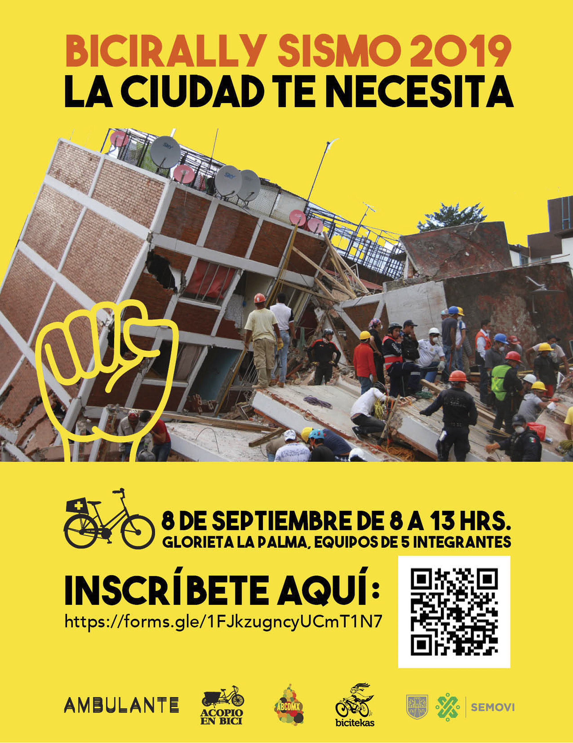 Acopio en Bici surgió a partir de la necesidad de idear planes de coordinación a raíz del terremoto. Ya fuera solo, con amigos o en grupos, hordas de ciclistas salieron a toda velocidad sorteando fugas de gas y caminos difíciles como un escuadrón perfectamente coordinado pese a que podía ser la primera vez para muchos. Las carencias de uno las cubría otro, por ejemplo, quizá alguien no sabe de mecánica pero puede recorrer distancias largas, o quizá alguien no conoce de primeros auxilios pero puede organizar una brigada. Y bajo esta dinámica pueden solventarse todas las necesidades.