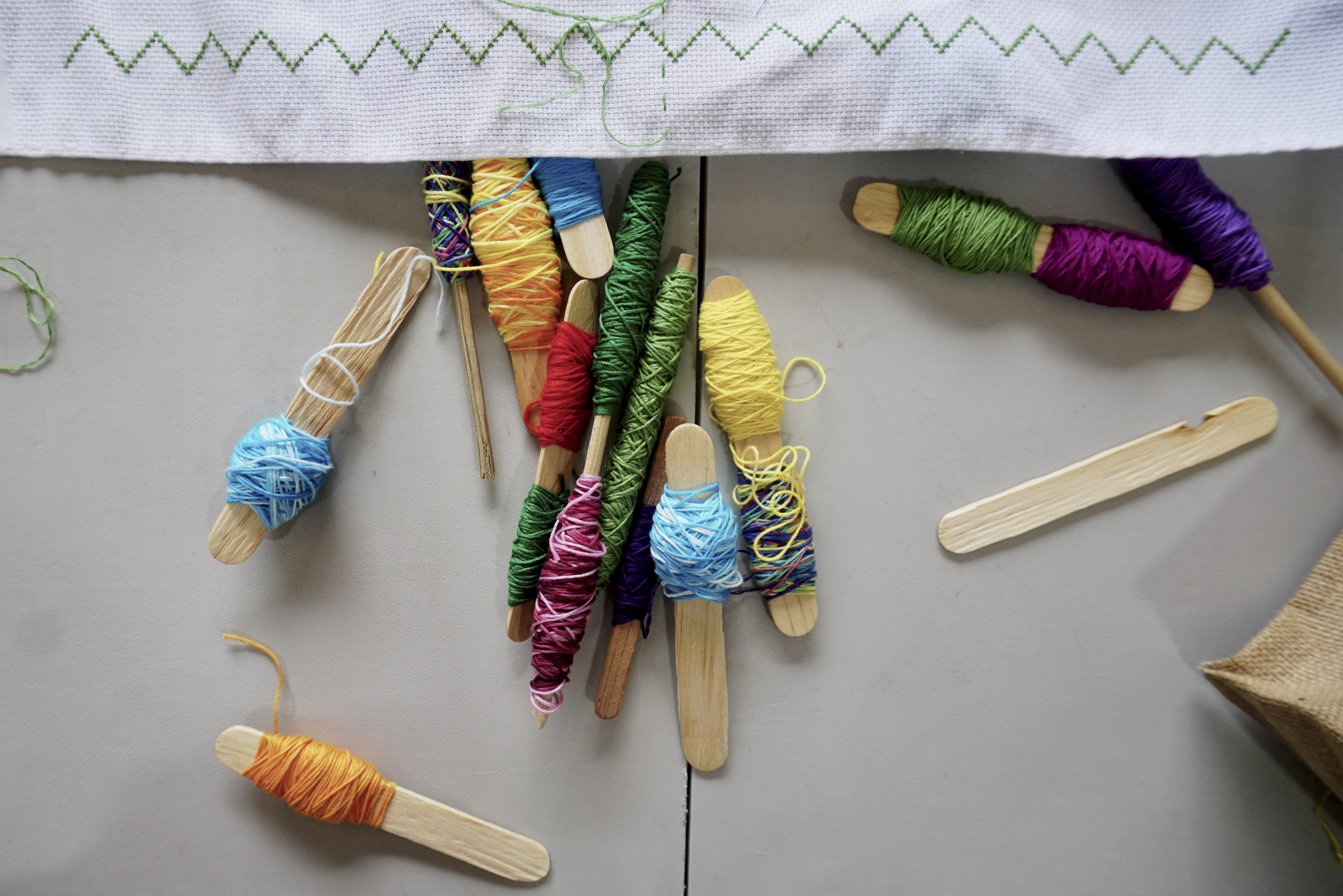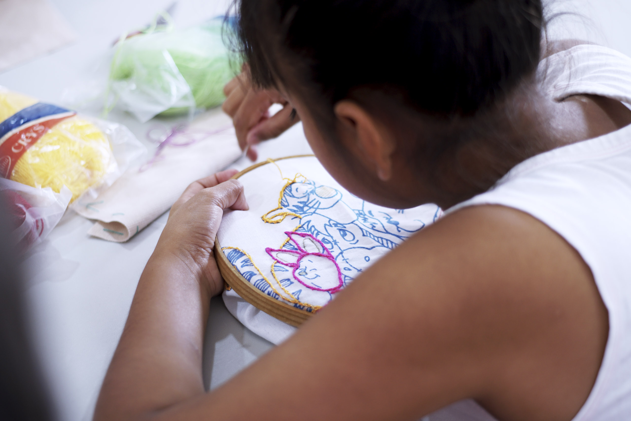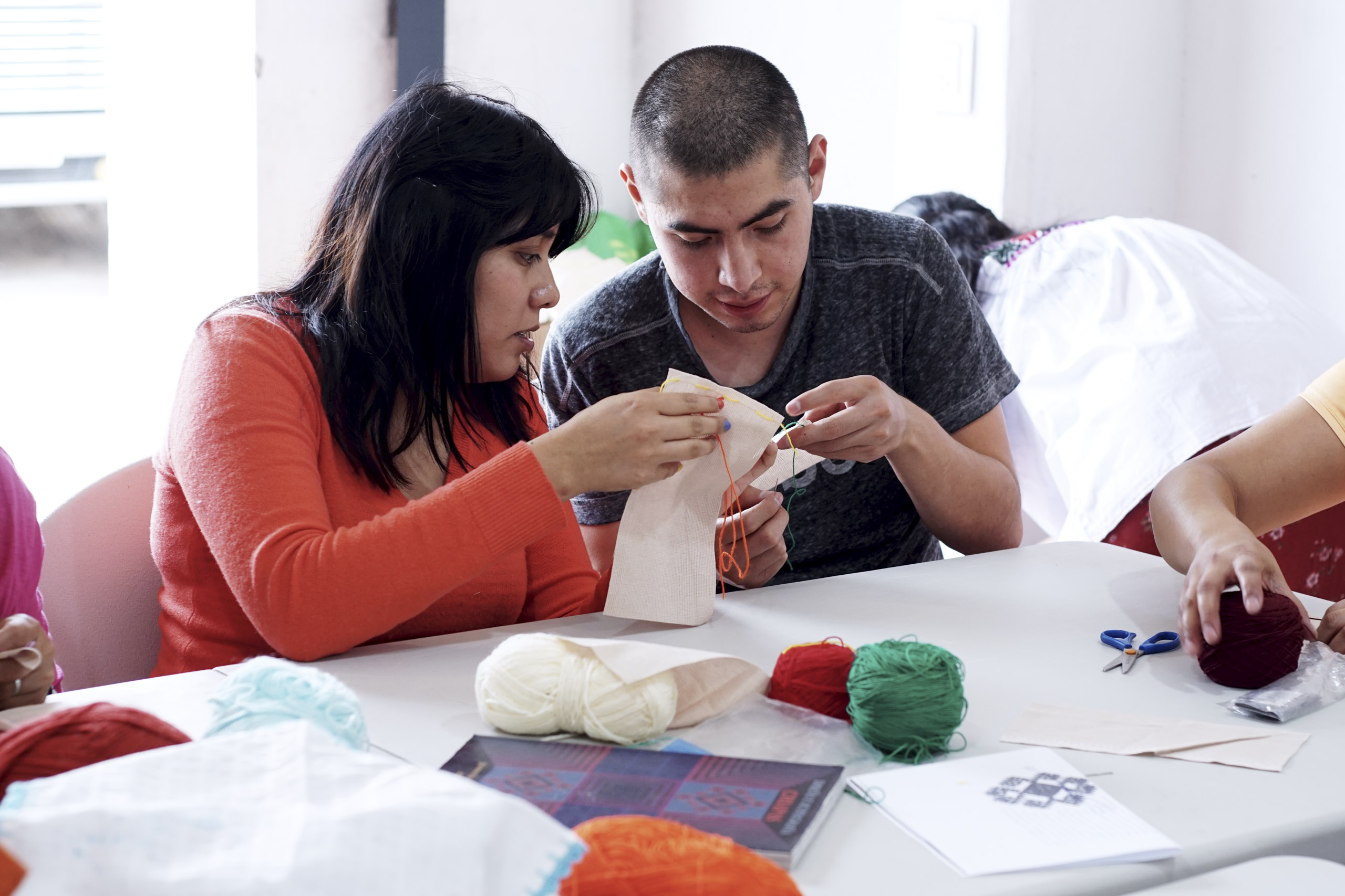 Las mujeres son las más involucradas en la reconstrucción, por eso comenzamos preguntándoles qué necesitaban. Ellas respondieron “sabemos tejer, sabemos bordar, pero no tenemos hilos ni bastidores ¿los pueden conseguir?”. Así inició el taller de bordado. Primero fueron cinco señoras, después diez y luego 30, hasta que el espacio quedó chico. Entonces las vecinas prestaron las casas que no se habían derrumbado y de esta forma se fue estructurando el proyecto: se generó una economía cooperativa a partir del trabajo comunitario basado en la tradición del bordado, un conocimiento propio de la zona.
