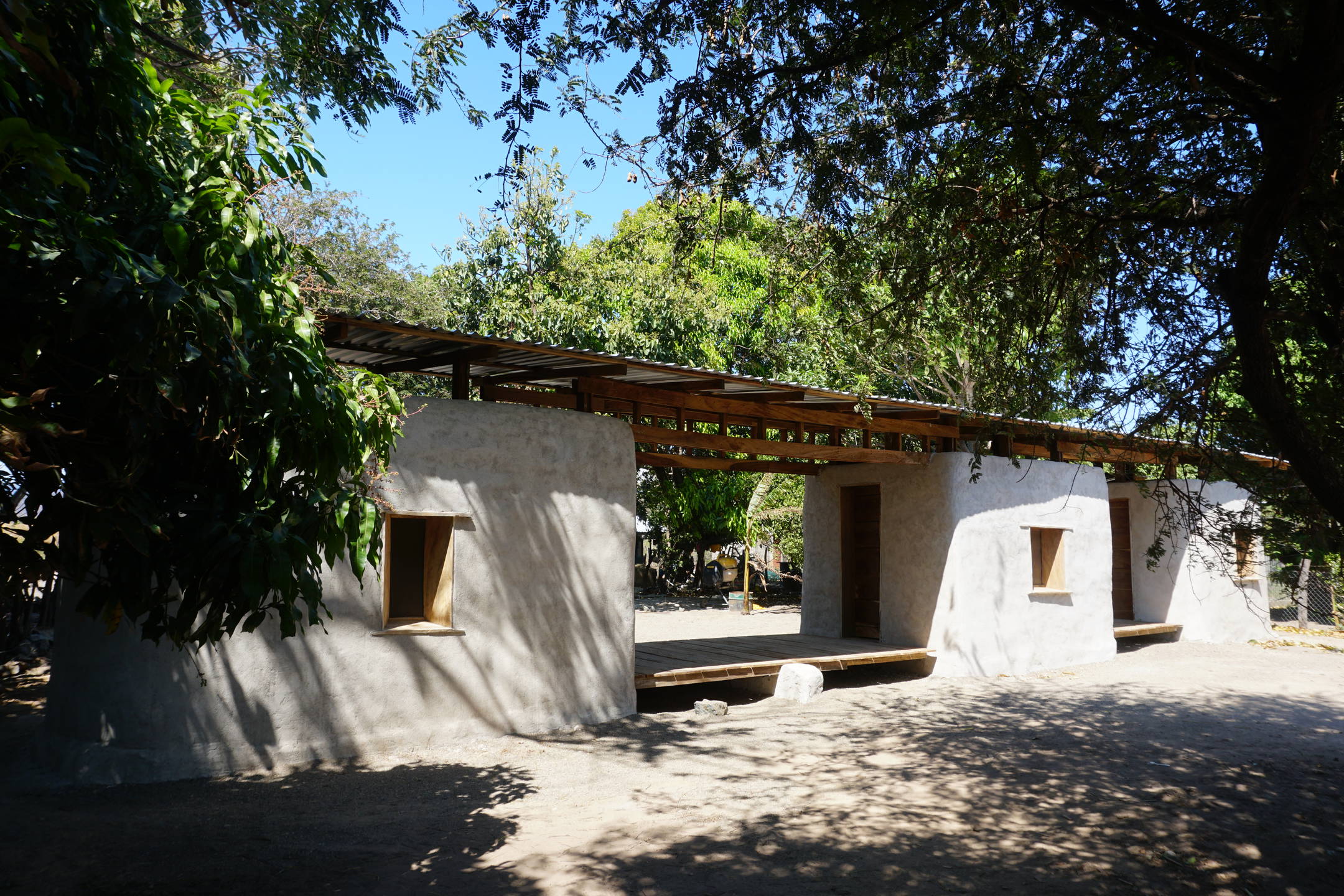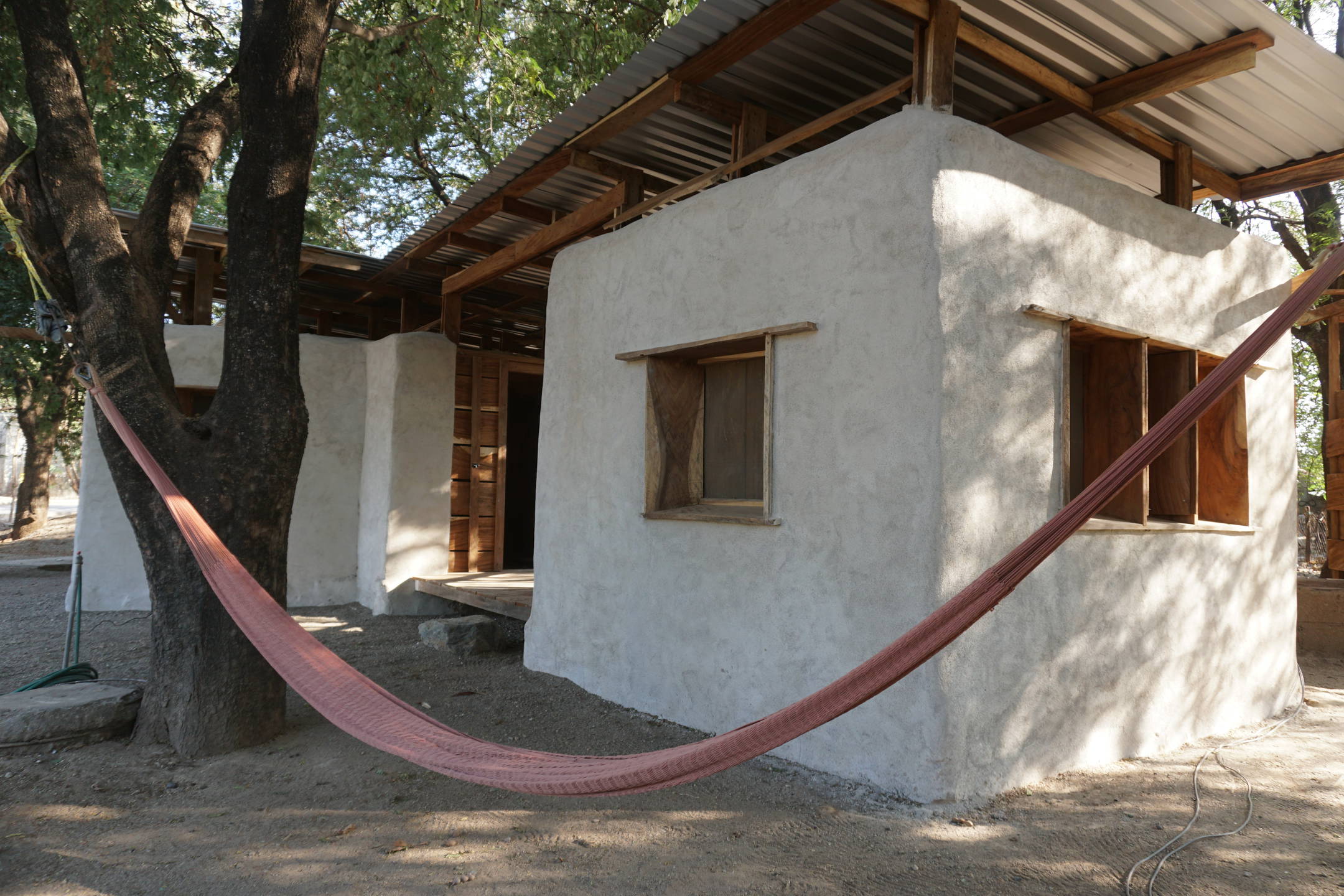 Utilizamos el cob como técnica constructiva para la edificación de las viviendas también por su gran capacidad de resistencia ante sismos, así como por las ventajas que ofrece en tiempos de secado, y la facilidad de no requerir que las piezas sean iguales. En esta técnica los muros se levantan con suelos ricos en arcilla y fibras de pasto. A diferencia del adobe, el cob se seca en el sitio; las paredes se levantan con la mezcla aún fresca. Una vez seca la mezcla, la paja interior queda trabada como una red tridimensional y las paredes se transforman en una pieza monolítica, esto minimiza las cantidades de madera para la construcción de la estructura.